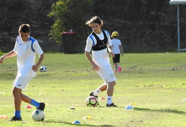 We focus on ball mastery, first touch, passing, movement, 1v1, and decision making.